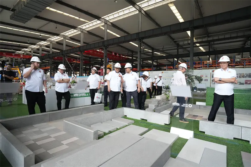 У простору за излагање узорака цигле, пажњу гостујуће групе привукле су различите пропусне цигле, имитације камених цигли и чврсти отпадни рециклирани грађевински материјали. Фу Бингхуанг, председник Куангонг Мацхинери Цо., Лтд., објаснио је да је кроз технолошко истраживање и развој, Куангонг Мацхинери Цо., Лтд. претвара отпад као што су грађевински отпад и јаловина у грађевинске материјале високе додате вредности, еколошки прихватљиве, одлажући преко 10 милиона тона чврстог отпада годишње. Председник Лиу Гуокуан је прегледао снагу и пропусност узорака цигле, похваливши праксу КГМ-а да „претвара отпад у благо“ као „модел циркуларне економије“.