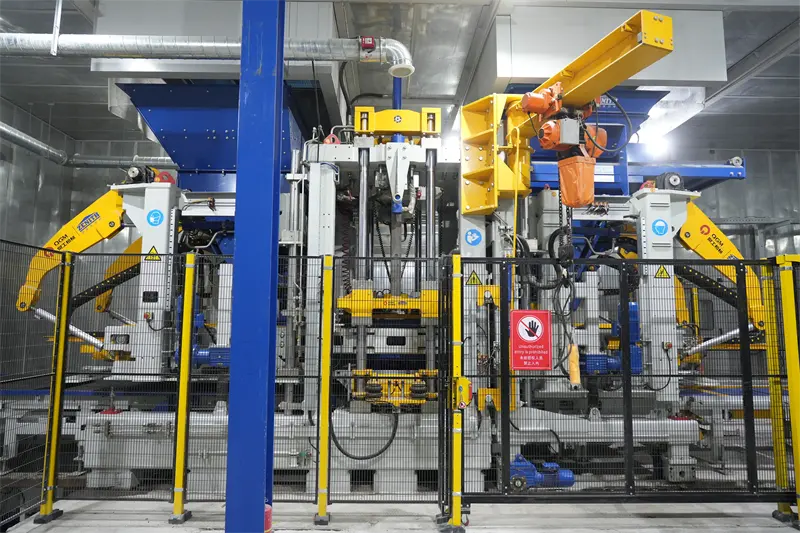 Основна опрема производне линије користи машину за формирање блокова ЗН1500-2Ц коју је недавно развио КГМ, која интегрише низ патентираних технологија. Опрема је опремљена интелигентним системом брзе промене калупа, који се може брзо пребацити на производњу разноврсних производа као што су цигле за тротоаре и пропусне цигле; заснован на индустријској Интернет платформи, остварује праћење у реалном времену и интелигентну анализу производних података, скраћује време одзива упозорења на квар опреме за 60% и значајно побољшава ефикасност рада и одржавања.