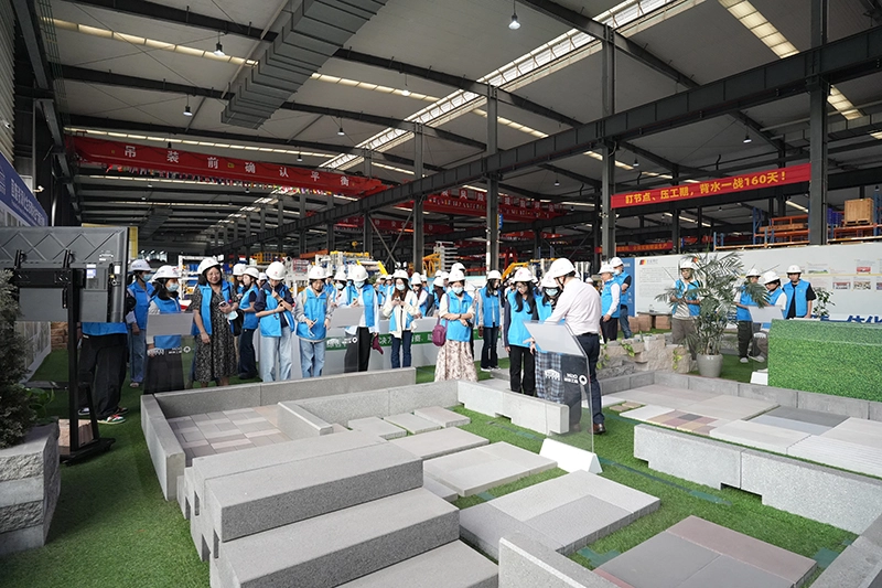 У радионици за производњу опреме, посетиоци су обишли различите спецификације и примене производа произведених коришћењем машина за прављење цигле компаније Куангонг Мацхинери, укључујући зидне блокове, поплочавање, материјале за контролу поплава, еколошку заштиту нагиба и гравитационе потпорне зидове. У изложбеном простору, лабораторији, монтажној радионици и радионици за отклањање грешака, посетиоци су се упознали са процесом производње производа компаније.