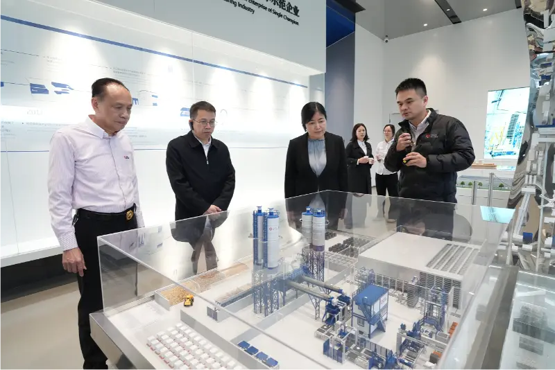 Делегација је прво обишла изложбену салу историје компаније. Вођени руководиоцима компаније, стекли су свеобухватан преглед развојног пута компаније Куангонг Мацхинери Цо., Лтд. који се протеже преко четрдесет година, испитујући различите почасти, сертификате и технолошка достигнућа компаније. Делегација је похвалила компанију за њену чврсту посвећеност производњи као основној индустрији и њену филозофију континуиране иновације, препознајући је као живописан микрокосмос ширег развоја приватне привреде.